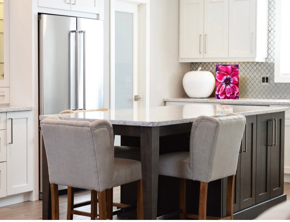 A beautiful bright canvas piece, painted with acrylic paint and ready to add colour to any space. It is about A4 in size and won't dominate. It has been finished off with a few layers of glossy varnish to protect it wherever it ends up!